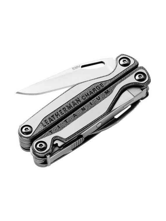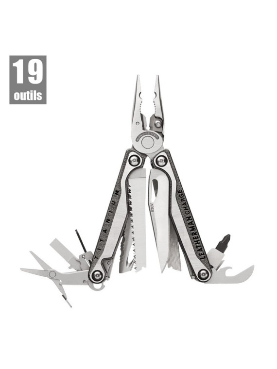 LEATHERMAN CHARGE TTI PLUS TITANIUM. Cette version est celle dite "améliorée" grace à ses coupe-fils remplaçables et de qualité premium. Sinon, on retrouve tous les outils qui ont forgé le succès du Charge TTi, à savoir la pince à sertir, le duo de couteaux (S30V et cranté HC420), la scie, les ciseaux mais aussi les limes.