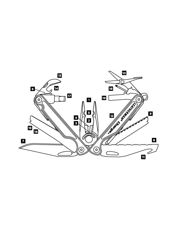 Une nouvelle version plus complète et plus confortable. 18 fonctions. Lame/outils autobloquants, pinces à bec effilé, pinces normales, cisailles coupe-fil, pinces coupantes pour fil dur, couteau/pointe à tracer, couteau cranté, scie, ciseaux, lime à bois/métal, lime diamantée, adaptateurs pour...